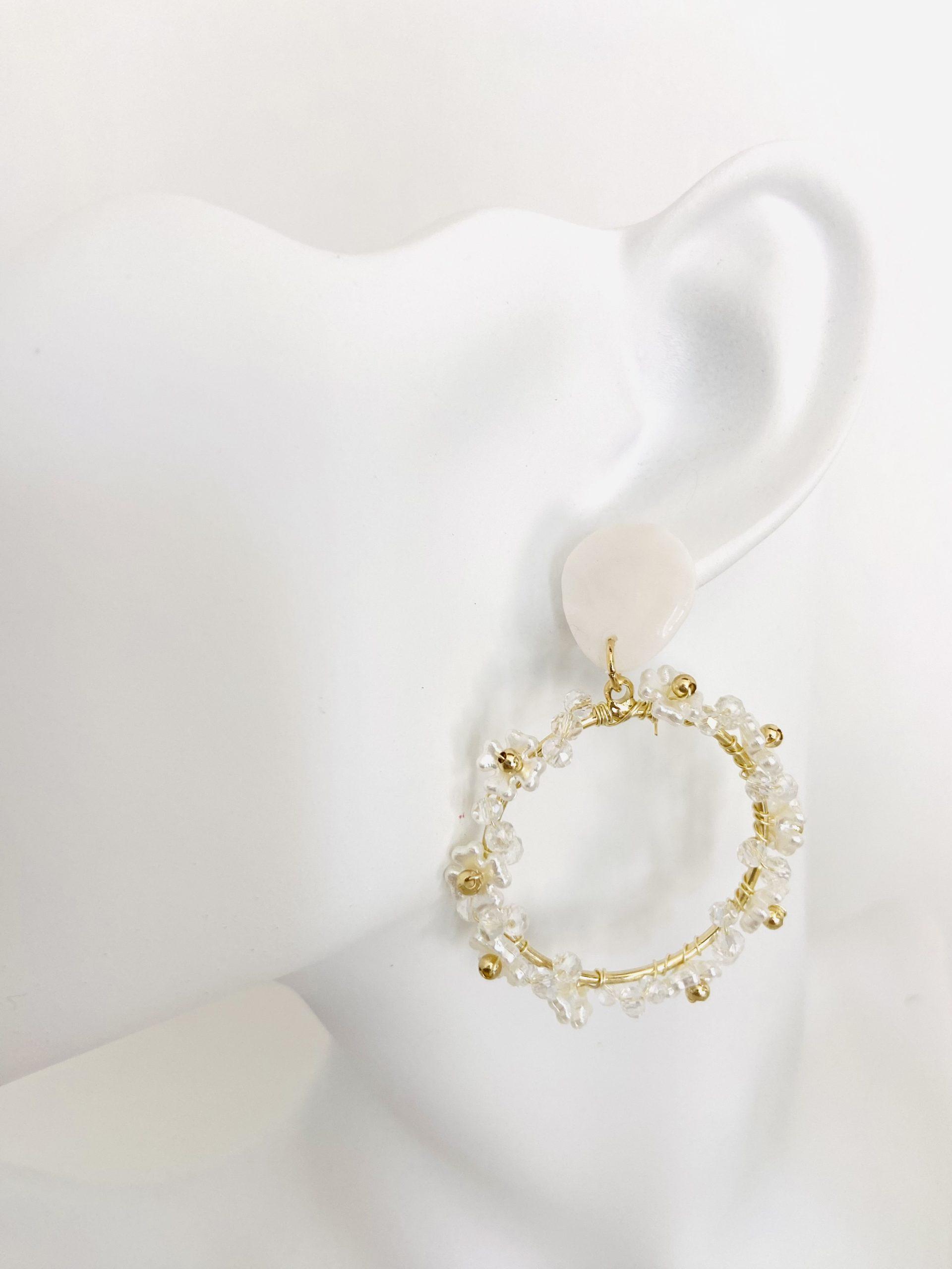 White polymer clay stud with imitation pearl circle pendant with glass beads.