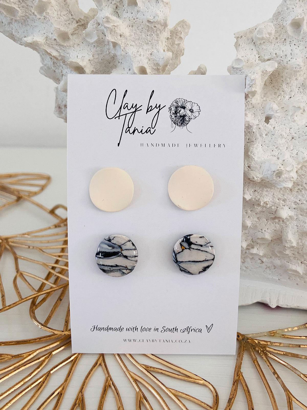 Colour/s: Off-white brushed metal stud & marble effect stud