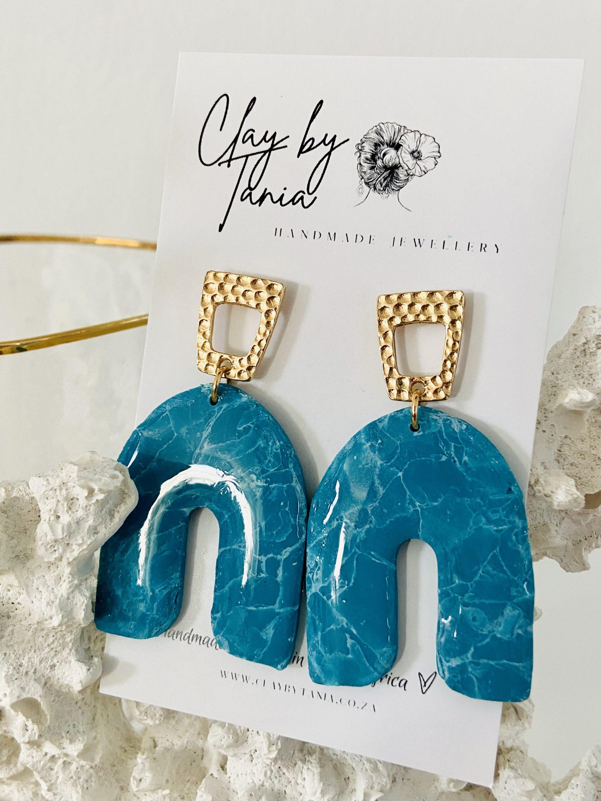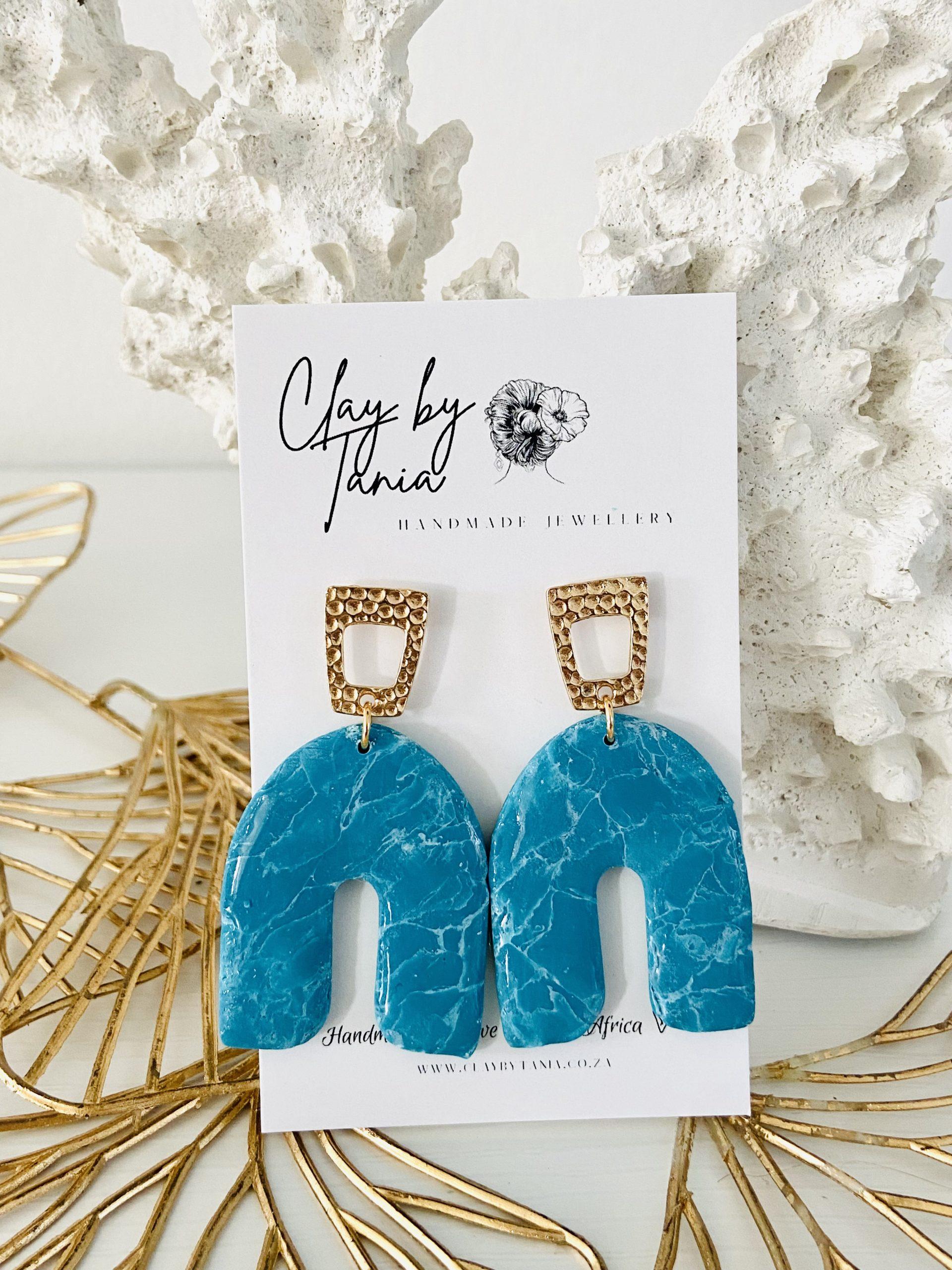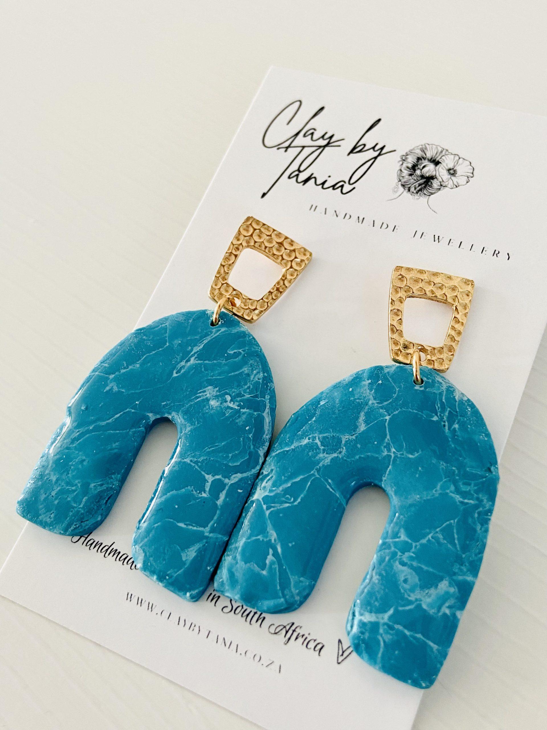 Colour/s: Turquoise blue U-shape with gold rhombus cut-out stud