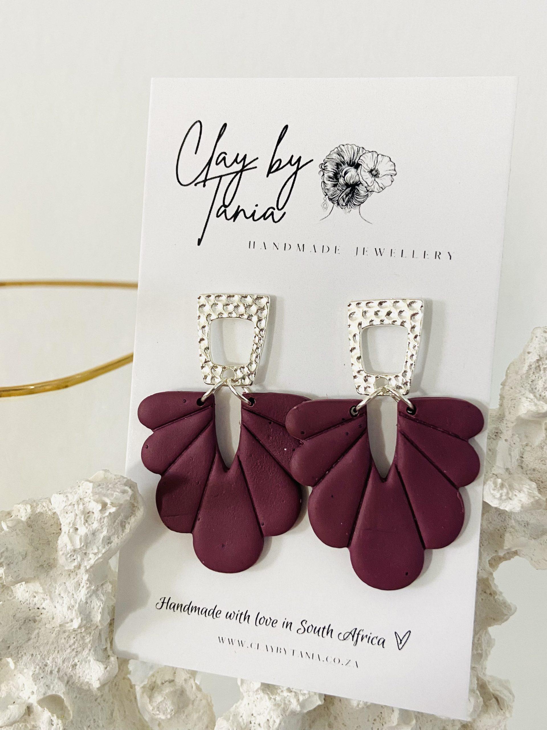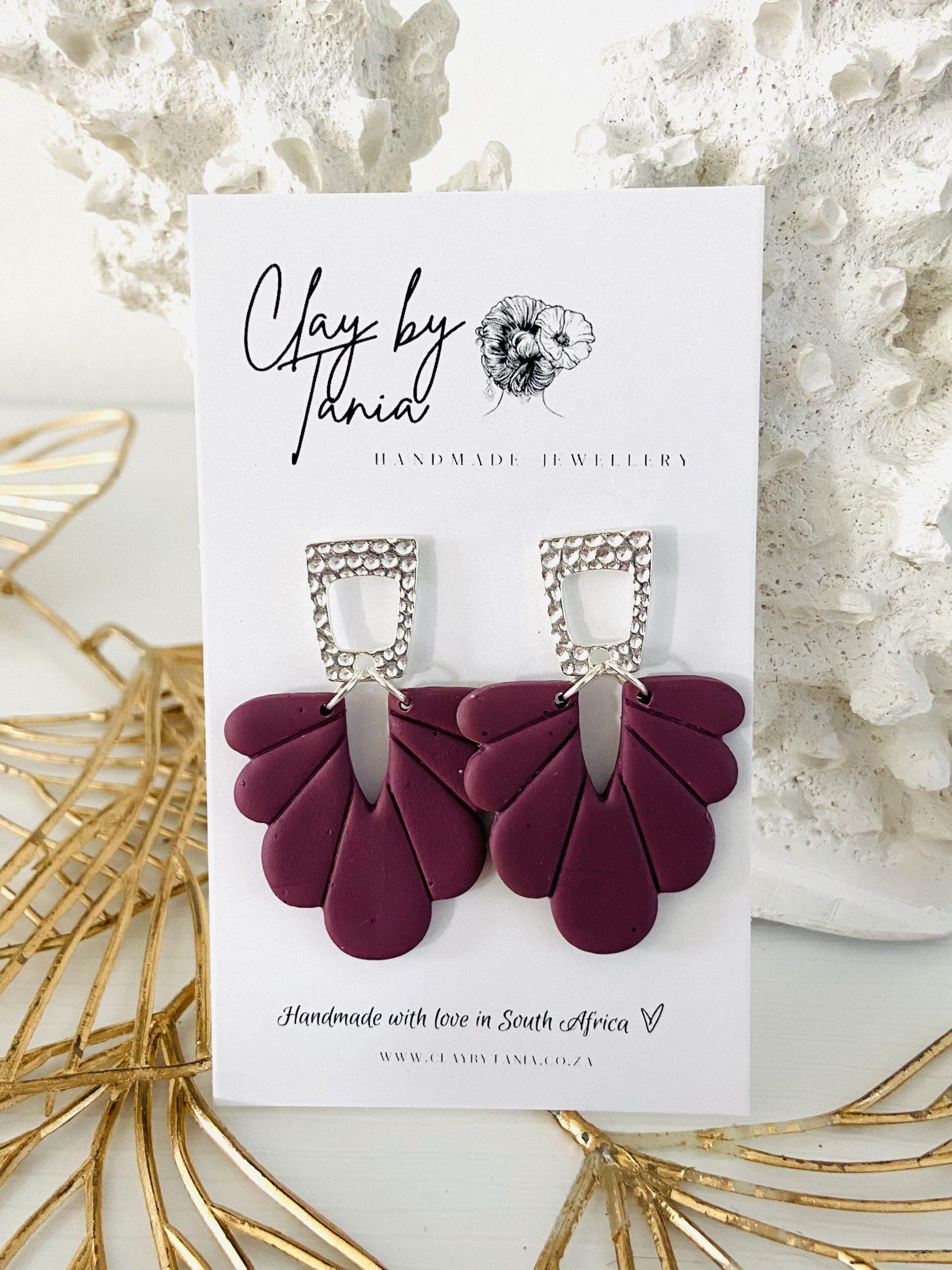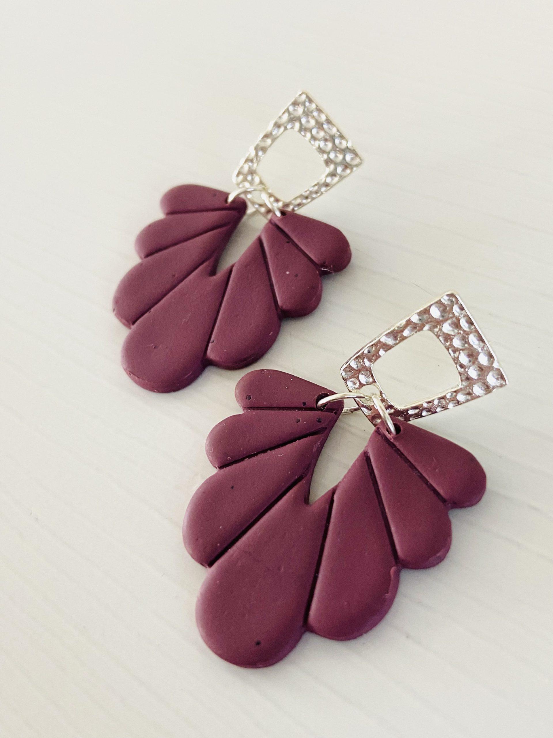 Colour/s: Grape, purple. Grape-ish purple abstract petal drop with silver rhombus cut-out stud