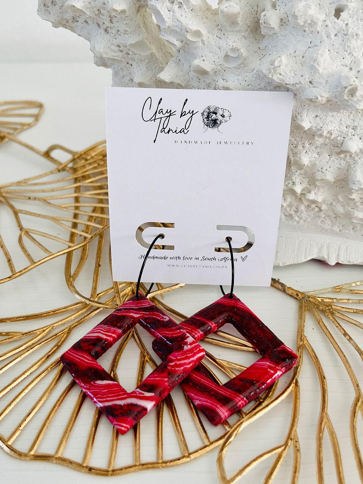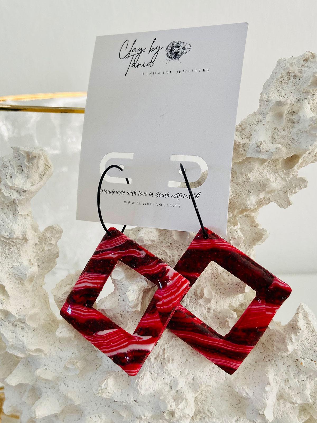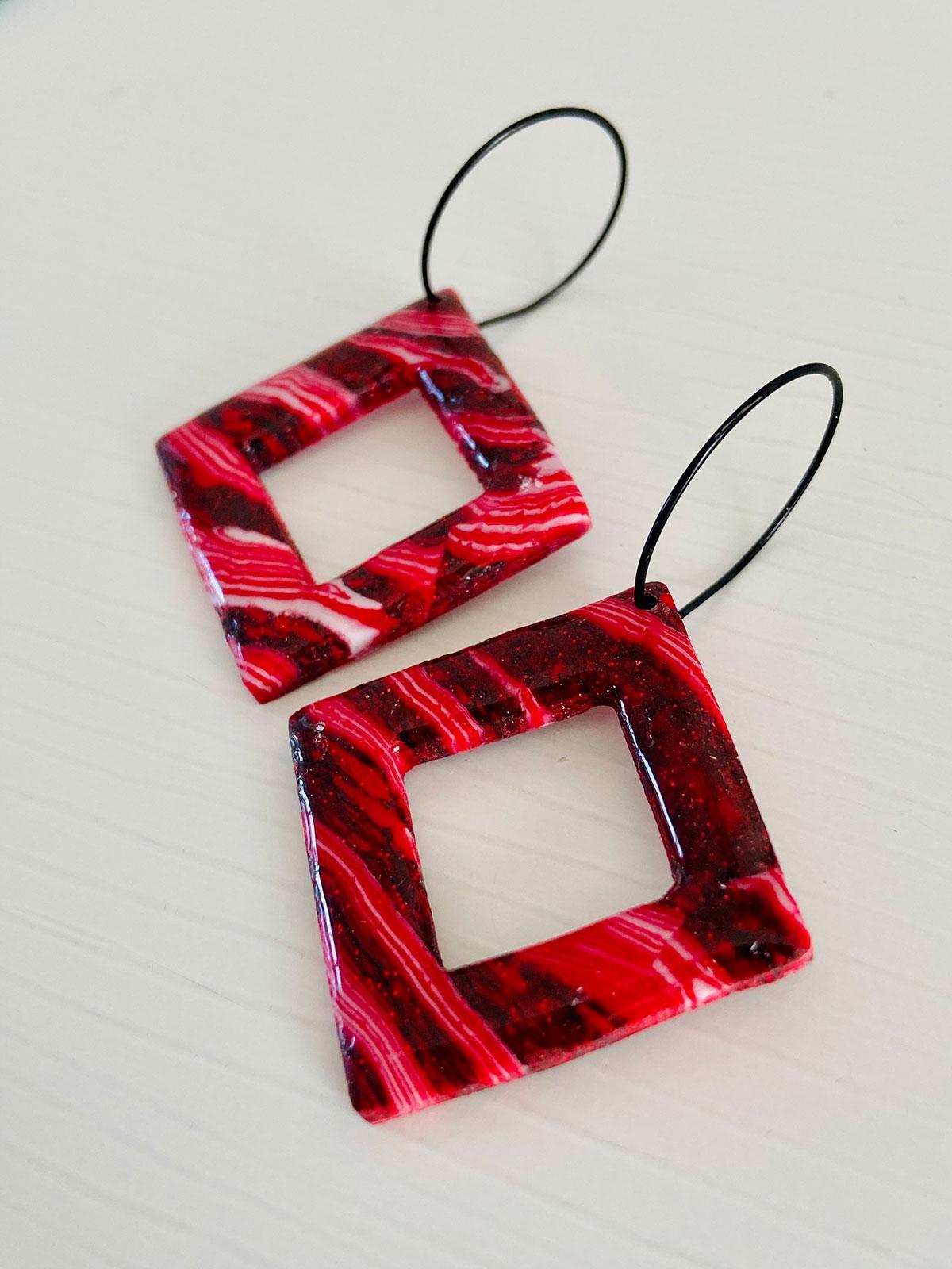 Colour/s: Red. Diamond with cut-out on small black hoop