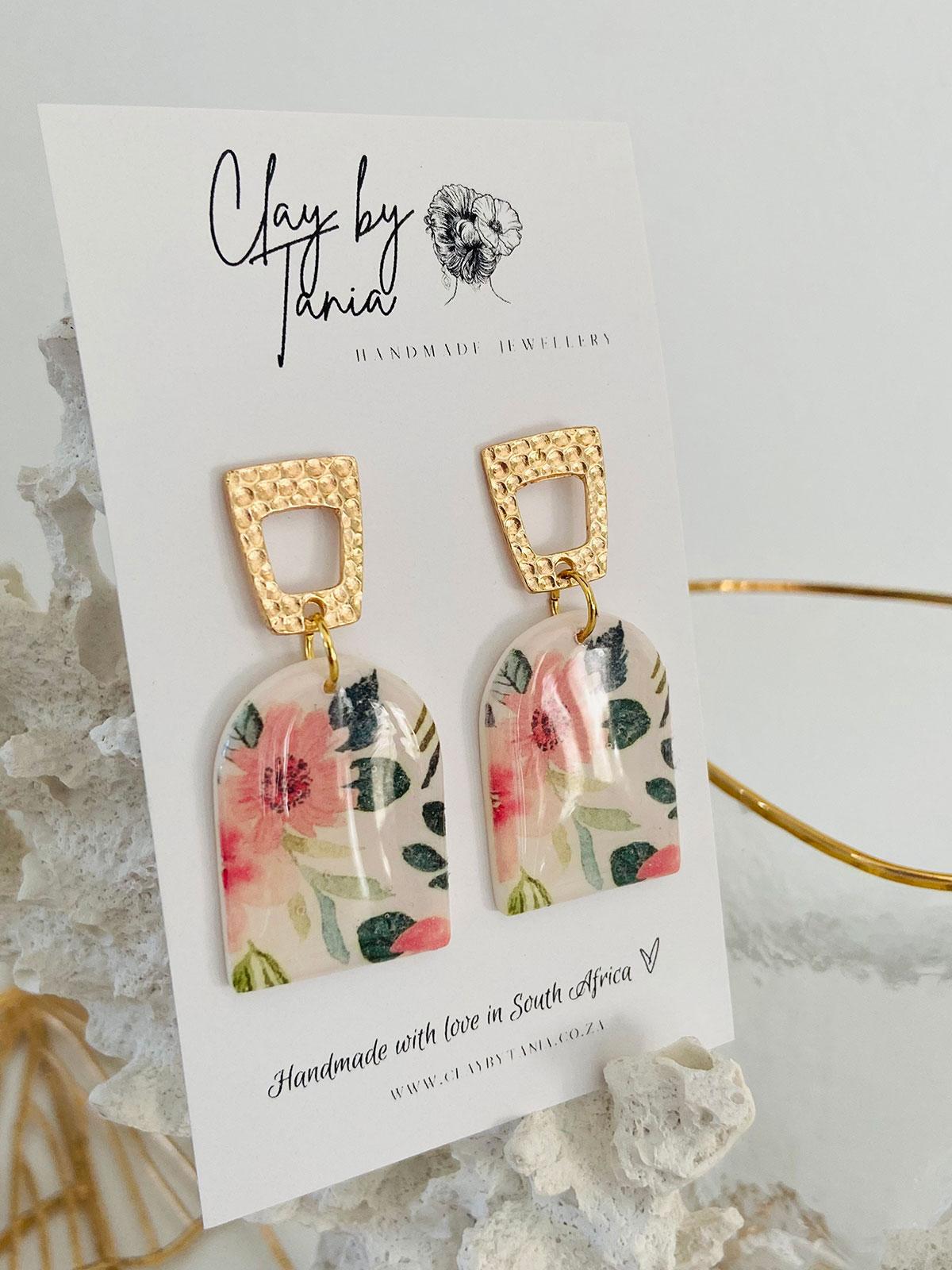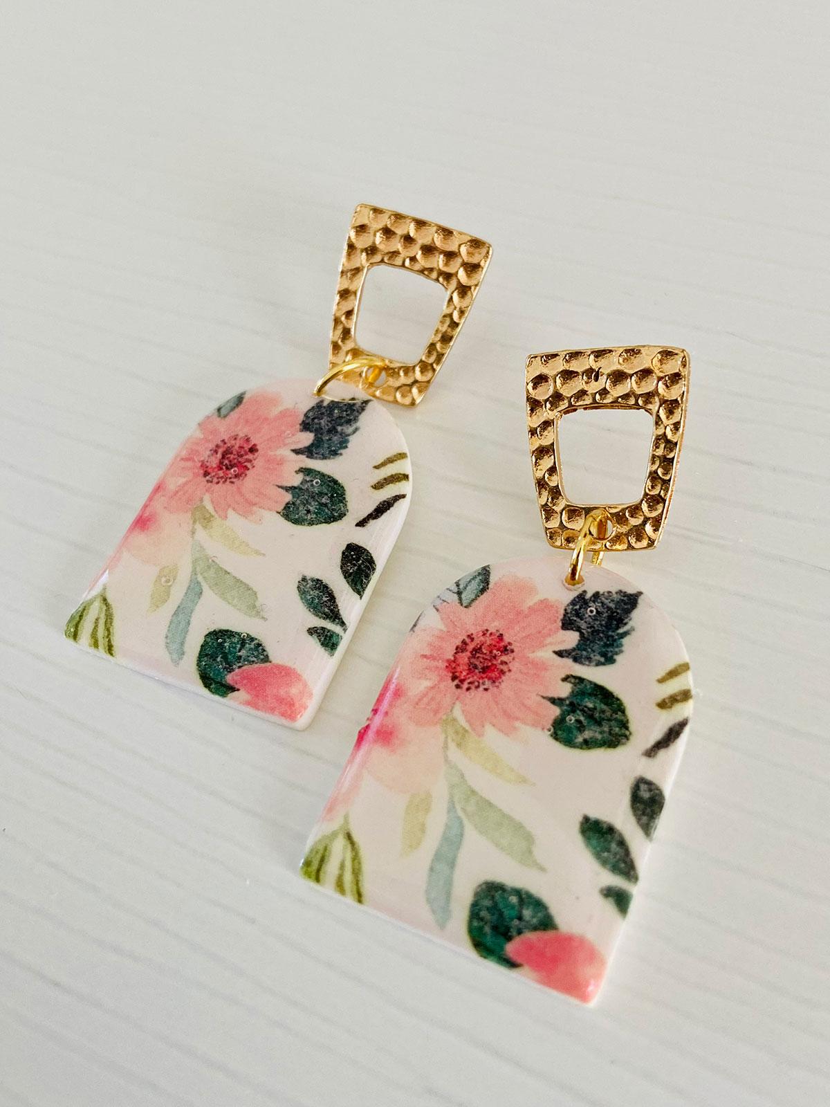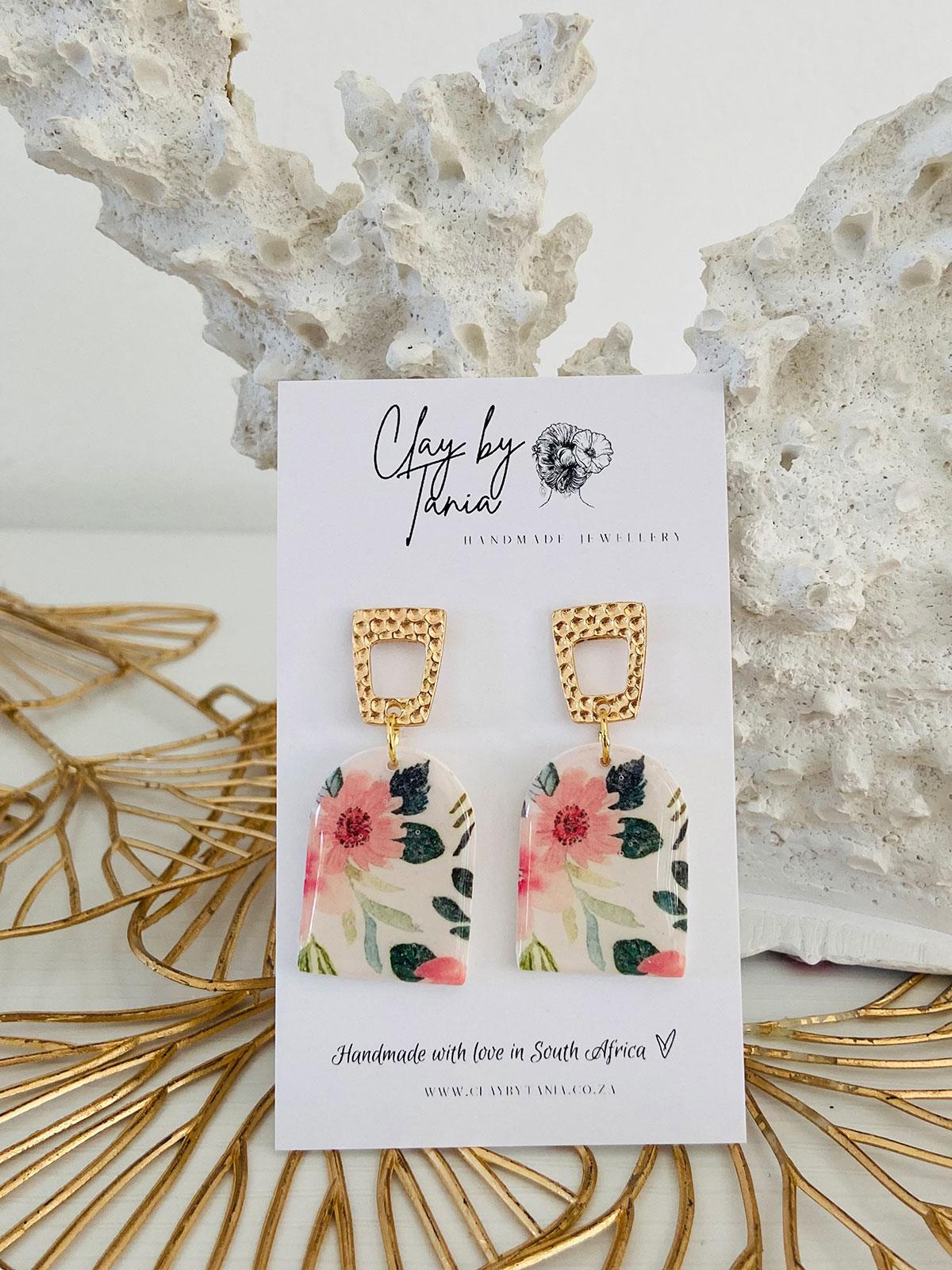 Colour/s: White, pinks, greens. Vintage drop with gold stud